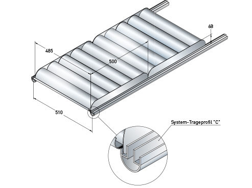 • Ziehen und Schieben der Aktivkassetten in den Trageprofilen, dadurch leicht von jedem ohne Werkzeug entnehmbar