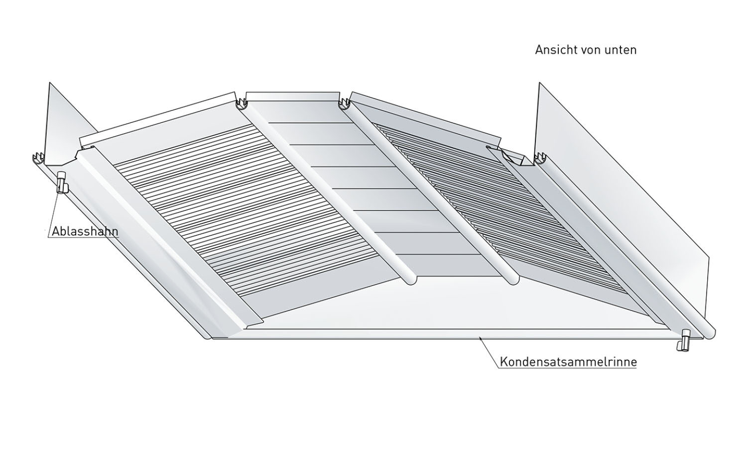 Der Schwerpunktabscheider wird passgenau in das Deckenraster der Lüftungsdecke für die schwerpunktmäßige Erfassung der Küchenabluft über thermischen Geräten mit hohen Wärmelasten eingefügt.
